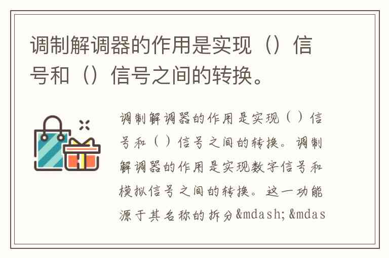 调制解调器的作用是实现数字信号和模拟信号之间的转换。这一功能源于其名称的拆分——Modem即Modulator(调制器)与Demodulator(解调器)的组合:调制器负责将计算机等数字设备输出的“0”和“1”二进制数字信号转换为可在电话线、电缆等模拟信道传输的连续波形信号,而解调器则执行相反操作,将接收的模拟信号还原为数字信号。