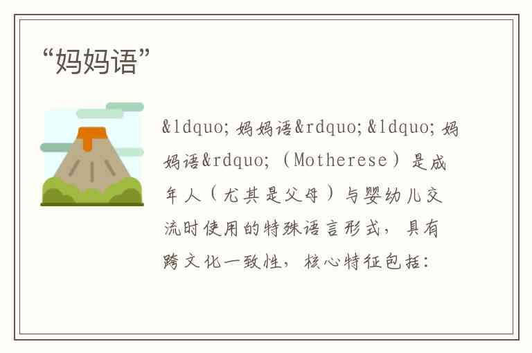 “妈妈语”(Motherese)是成年人(尤其是父母)与婴幼儿交流时使用的特殊语言形式,具有跨文化一致性,核心特征包括:发音清晰夸张、语调高亢且变化丰富、语速缓慢、句子简短(如“红苹果”“球球滚过来”)、内容具体(聚焦具象事物)并适度重复(如重复关键词“书,书!”),还常配合肢体动作与面部表情。其起源可追溯至胎教阶段,能激活婴儿右脑听觉皮层,帮助识别语音边界与词汇,提升语言学习效率,例如6-12月龄婴儿使用妈妈语后18月龄词汇量可提升40%。使用场景需根据孩子语言发展阶段调整:0-6月以声音刺激为主(如长元音“啊呜”),6-12月侧重词汇爆发(三遍重复+指物命名),1-3岁转向句子建构(疑问升调、动词夸张)。2岁后应减少过度幼稚化表达(如“吃饭饭”),避免单向输出,需留时间等待回应。爸爸使用妈妈语效果更佳,研究显示其能使婴儿发音尝试增加23%。核心作用是通过结构化语言输入促进语言发展,同时建立亲子情感联结,但若孩子已能自发用句子表达,可逐渐过渡到标准语言。