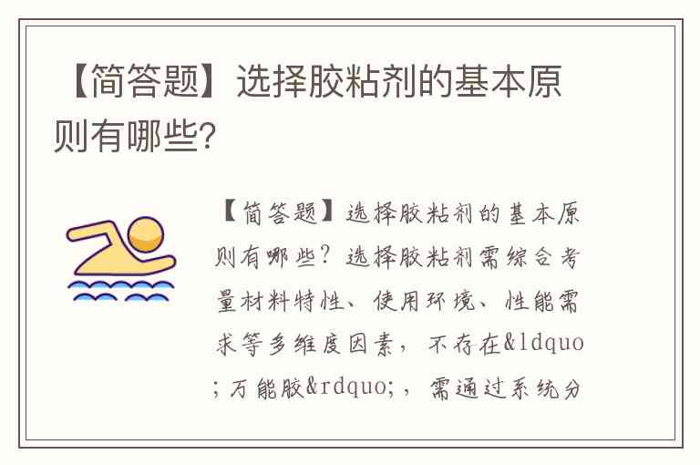 选择胶粘剂需综合考量材料特性、使用环境、性能需求等多维度因素,不存在“万能胶”,需通过系统分析匹配最佳方案。以下是核心原则: