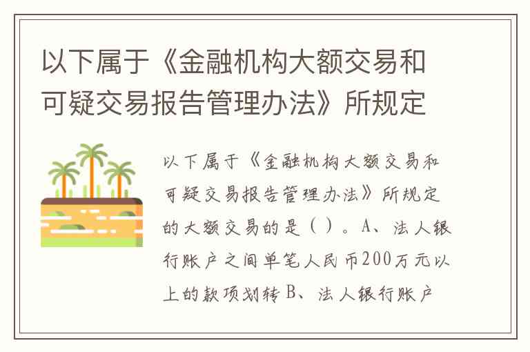 文档1中提到“单位之间100万元以上转账”的表述,实际是早期版本或特定场景(如现金支付)的规定,最新有效标准以200万元人民币/20万美元外币为准。此外,跨境交易虽属于大额交易范畴,但本题选项未涉及,故不纳入判断。