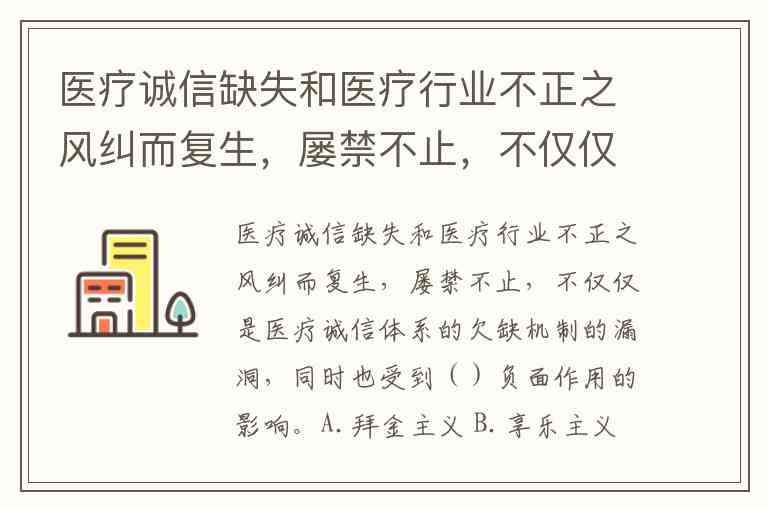 医疗诚信缺失和医疗行业不正之风纠而复生,屡禁不止,不仅仅是医疗诚信体系的欠缺机制的漏洞,同时也受到()负面作用的影响。A.拜金主义 B.享乐主义 C.市场经济 D.经济一体化