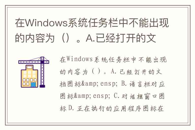 在Windows系统任务栏中不能出现的内容为()。A.已经打开的文档图标 B.语言栏对应图标 C.对话框窗口图标 D.正在执行的应用程序图标