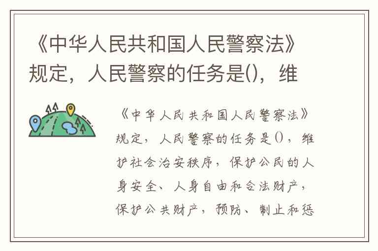 《中华人民共和国人民警察法》第二条明确规定,人民警察的任务是维护国家安全,维护社会治安秩序,保护公民的人身安全、人身自由和合法财产,保护公共财产,预防、制止和惩治违法犯罪活动。这一表述在多个权威法律文本中保持一致,凸显了国家安全在警察职责体系中的首要地位。