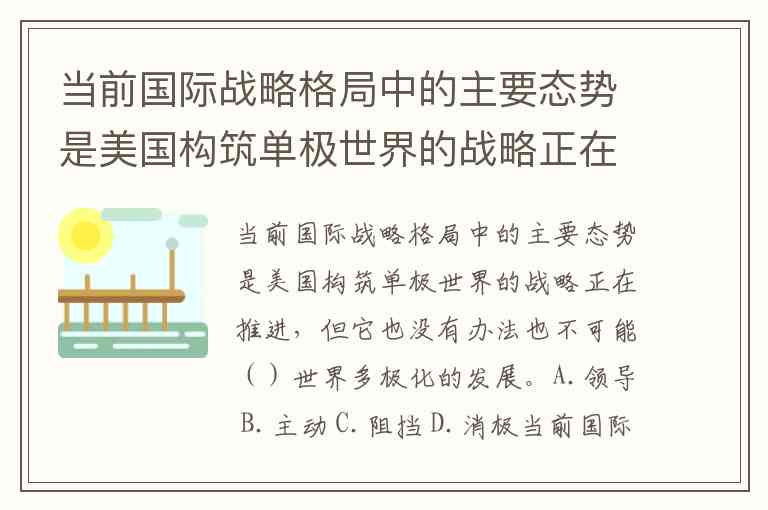 当前国际战略格局中的主要态势是美国构筑单极世界的战略正在推进,但它也没有办法也不可能()世界多极化的发展。A.领导 B.主动 C.阻挡 D.消极