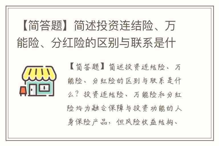 【简答题】简述投资连结险、万能险、分红险的区别与联系是什么?