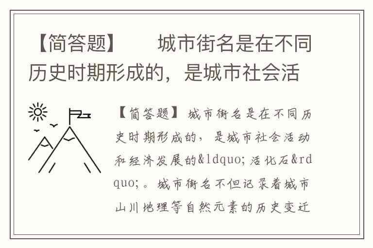 【简答题】 城市街名是在不同历史时期形成的,是城市社会活动和经济发展的“活化石”。城市街名不但记录着城市山川地理等自然元素的历史变迁,也反映城市功能的变化轨迹,更蕴含有传统文化的因子。如南昌的各条街道的名字都是根据历史名人所取:中山路,船山路,渊明路,阳明路,叠山路,孺子路,永叔路、象山路,子固路等。正是如此带有纪念性的命名,使这一条条路鲜活起来,充满了历史文化感。 有些城市街名在进行地名的时候,热衷于使用洋名。为规范地名命名,北京、广东、河北等地政府出台地方性规章,禁止使用外国人名、地名作为本地地名。 运用文化自觉和文化自信的有关知识,说明树立文化自觉和文化自信的表现。(3分)
