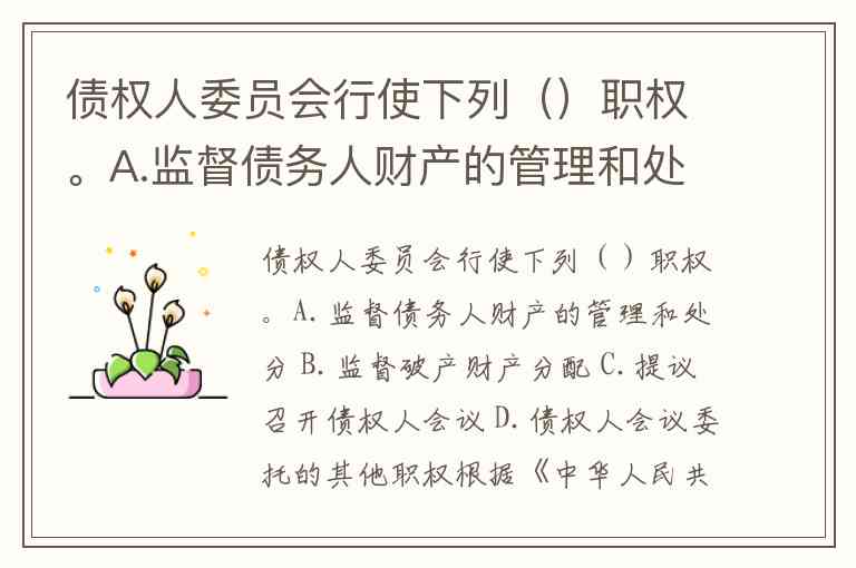 债权人委员会行使下列()职权。A.监督债务人财产的管理和处分 B.监督破产财产分配 C.提议召开债权人会议 D.债权人会议委托的其他职权