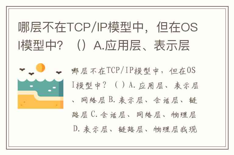 再看题目选项,题目问的是“哪层不在TCP/IP模型中,但在OSI模型中”,也就是要选OSI有而TCP/IP没有的层。