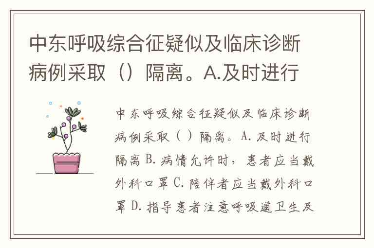 中东呼吸综合征疑似及临床诊断病例采取()隔离。A.及时进行隔离 B.病情允许时,患者应当戴外科口罩 C.陪伴者应当戴外科口罩 D.指导患者注意呼吸道卫生及手卫生