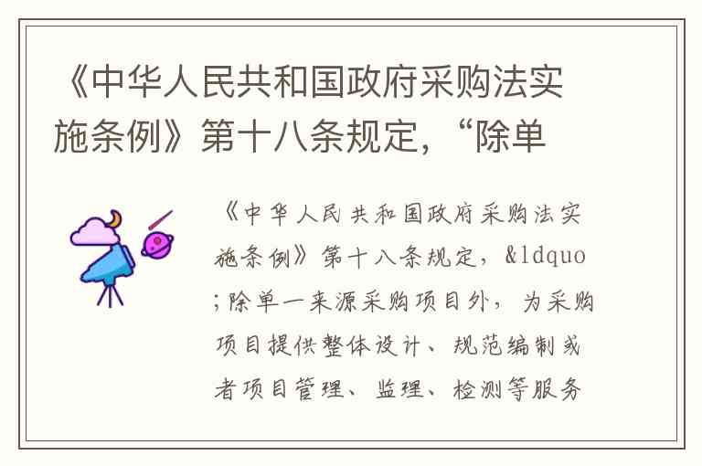 从法律逻辑看,该条款旨在防止供应商因前期服务获取竞争优势而影响采购公平。例如,若某企业已为项目提供整体设计服务,其便不得再参与该项目的设备采购或施工承包等非服务类采购活动,但可继续承担同一项目的监理或检测服务。实践中,这一规则常与单位负责人关联关系、控股管理关系等主体资格限制条款配合适用,共同构建政府采购的公平竞争环境。