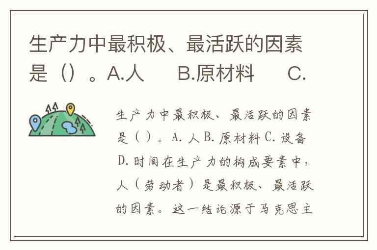 生产力中最积极、最活跃的因素是()。A.人 B.原材料 C.设备 D.时间