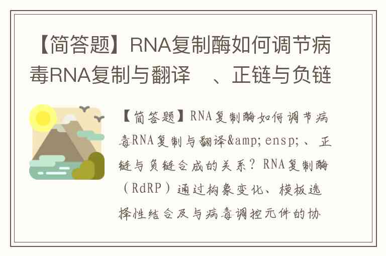 【简答题】RNA复制酶如何调节病毒RNA复制与翻译 、正链与负链合成的关系?