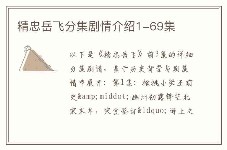 以下是《精忠岳飞》前3集的详细分集剧情,基于历史背景与剧集情节展开: