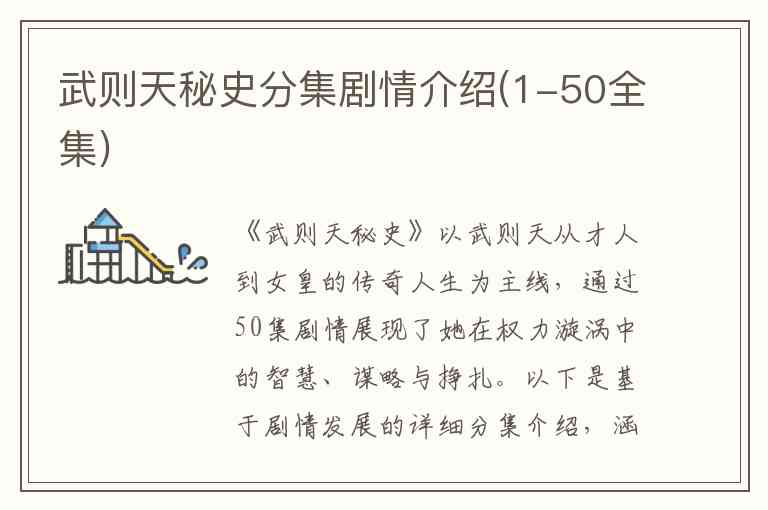 《武则天秘史》以武则天从才人到女皇的传奇人生为主线,通过50集剧情展现了她在权力漩涡中的智慧、谋略与挣扎。以下是基于剧情发展的详细分集介绍,涵盖其入宫、夺后、称帝等关键阶段: