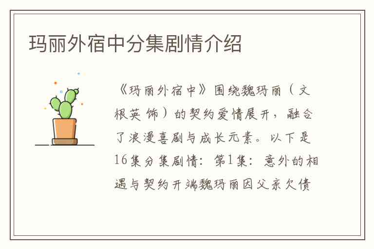 《玛丽外宿中》围绕魏玛丽(文根英 饰)的契约爱情展开,融合了浪漫喜剧与成长元素。以下是16集分集剧情: