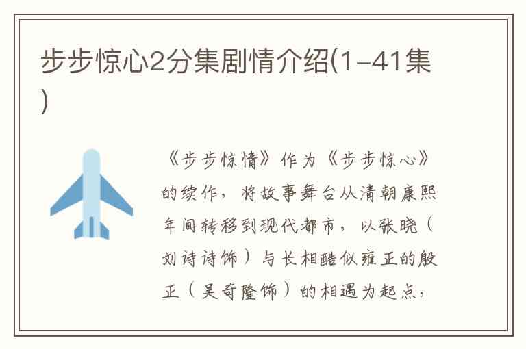 目前可靠信息仅涵盖前2集详细剧情,后续集数因资料有限无法完整呈现。需特别说明的是,该剧实际播出名为《步步惊情》,共41集,而非部分平台标注的“42集”。结局中,张晓与殷正最终走到一起,但观众普遍认为“他们不是我们追的四爷和若曦”,这种“似是而非”的宿命感,恰是这部续作留给观众最复杂的情感印记。
