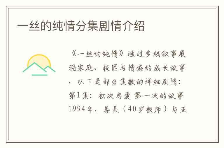 《一丝的纯情》通过多线叙事展现家庭、校园与情感的成长故事,以下是部分集数的详细剧情: