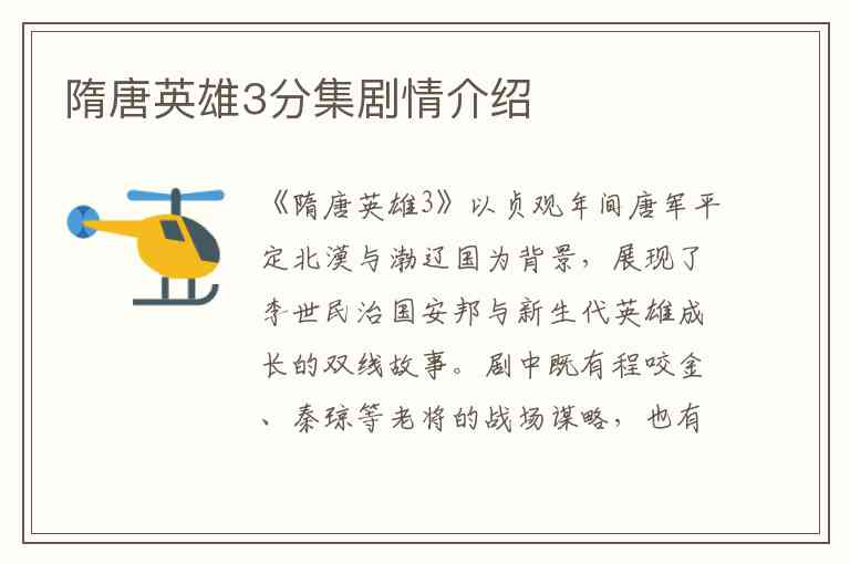 《隋唐英雄3》以贞观年间唐军平定北漠与渤辽国为背景,展现了李世民治国安邦与新生代英雄成长的双线故事。剧中既有程咬金、秦琼等老将的战场谋略,也有罗通、薛仁贵等小将的热血崛起,同时交织着后宫权谋与家国情怀。以下是已获取的关键集数剧情: