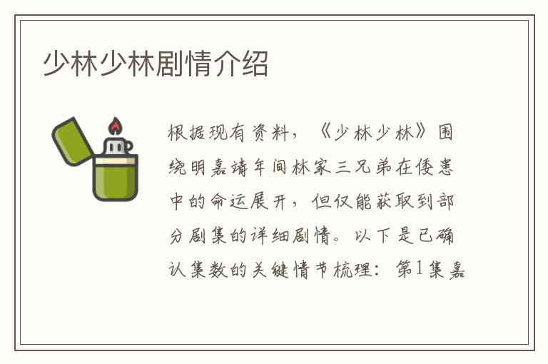 根据现有资料,《少林少林》围绕明嘉靖年间林家三兄弟在倭患中的命运展开,但仅能获取到部分剧集的详细剧情。以下是已确认集数的关键情节梳理: