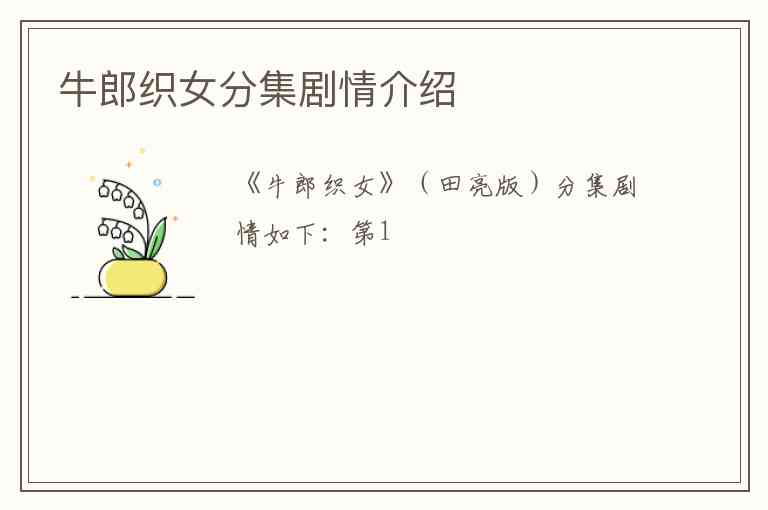 《牛郎织女》(田亮版)分集剧情如下:第1