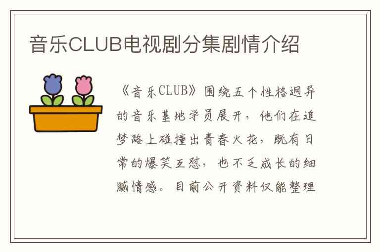 《音乐CLUB》围绕五个性格迥异的音乐基地学员展开,他们在追梦路上碰撞出青春火花,既有日常的爆笑互怼,也不乏成长的细腻情感。目前公开资料仅能整理出部分剧集的完整剧情,以下是可考证的分集内容: