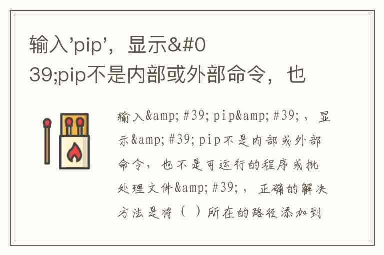 出现 “不是内部或外部命令” 的错误,根本原因是操作系统在 PATH 的所有目录里都没有找到 pip.exe 这个可执行文件。