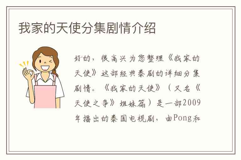 好的,很高兴为您整理《我家的天使》这部经典泰剧的详细分集剧情。