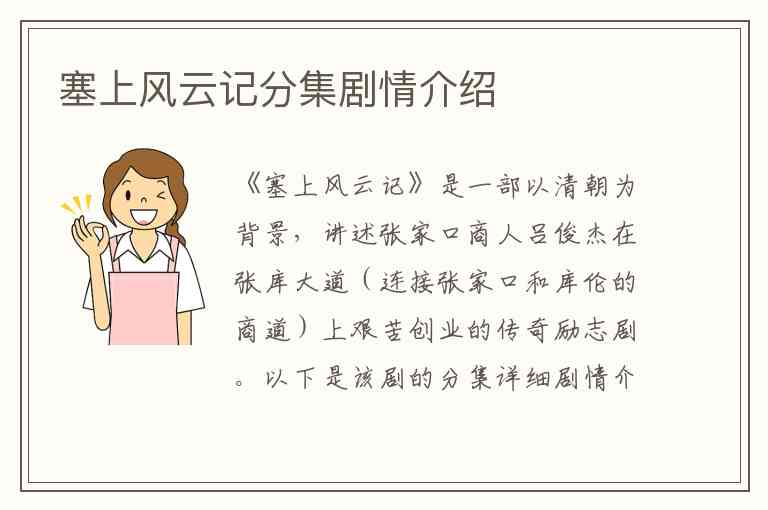 希望这份分集剧情介绍能帮助您更好地了解《塞上风云记》的故事情节!