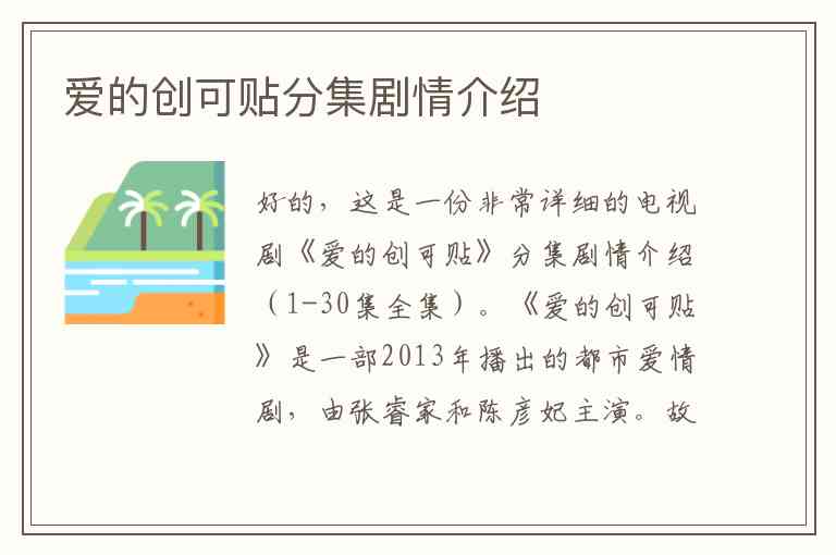 好的,这是一份非常详细的电视剧《爱的创可贴》分集剧情介绍(1-30集全集)。