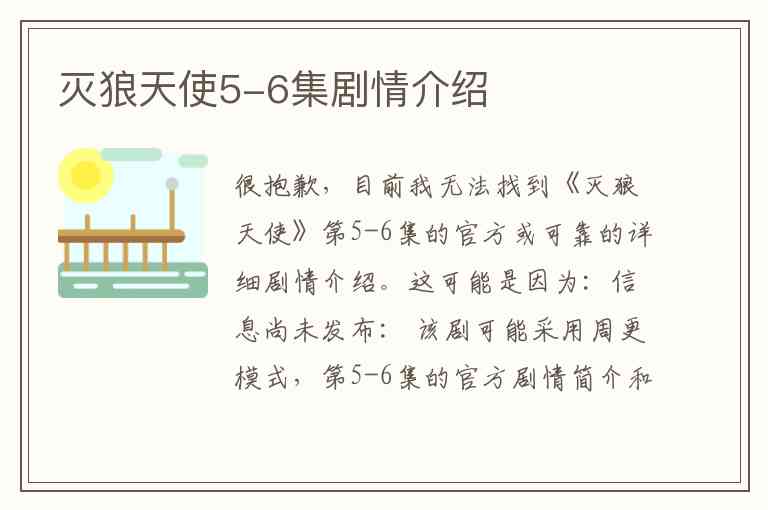很抱歉,目前我无法找到《灭狼天使》第5-6集的官方或可靠的详细剧情介绍。这可能是因为: