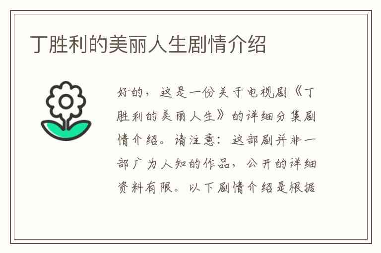好的,这是一份关于电视剧《丁胜利的美丽人生》的详细分集剧情介绍。