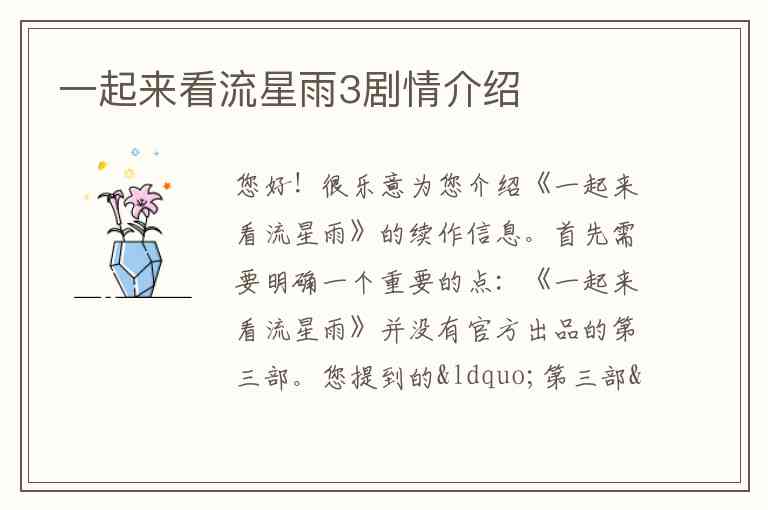 首先需要明确一个重要的点:《一起来看流星雨》并没有官方出品的第三部。