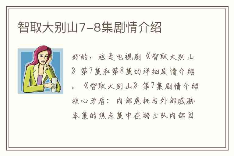 好的,这是电视剧《智取大别山》第7集和第8集的详细剧情介绍。