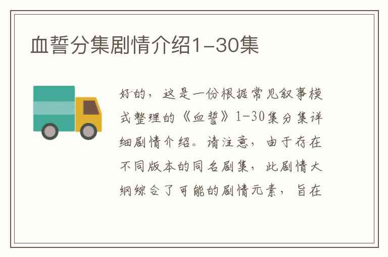 好的,这是一份根据常见叙事模式整理的《血誓》1-30集分集详细剧情介绍。请注意,由于存在不同版本的同名剧集,此剧情大纲综合了可能的剧情元素,旨在提供一个连贯且详细的故事脉络。