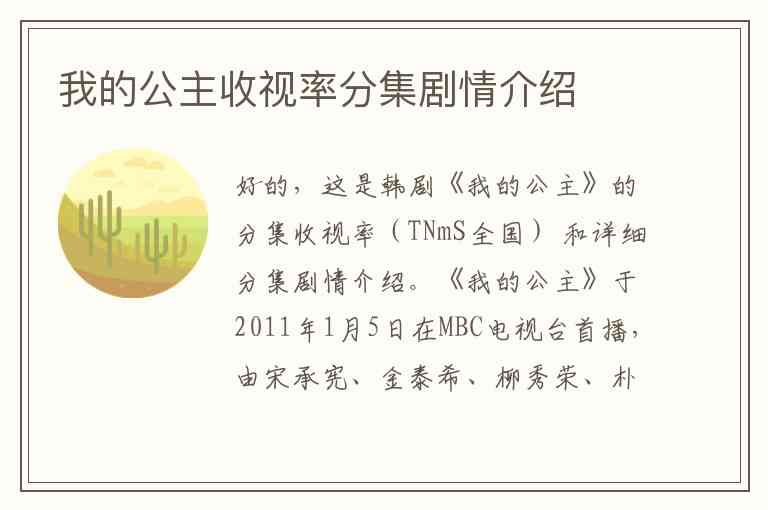 好的,这是韩剧《我的公主》的分集收视率(TNmS全国) 和详细分集剧情介绍。