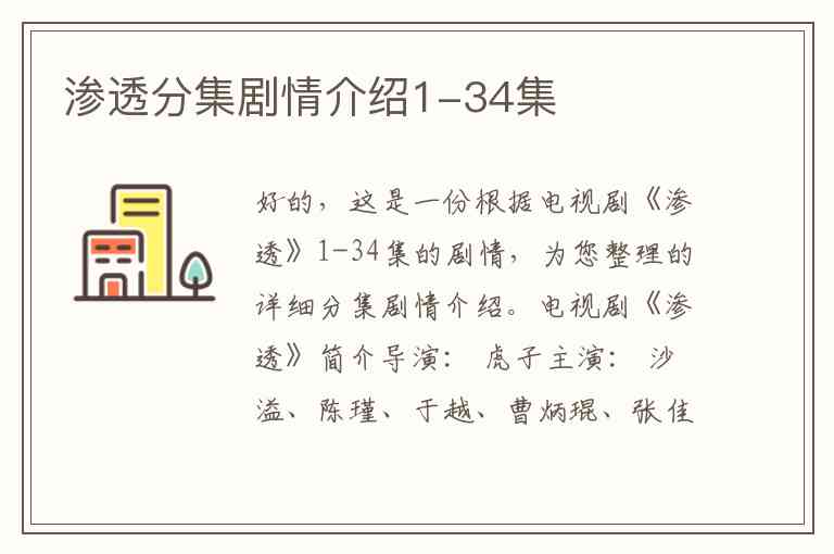 好的,这是一份根据电视剧《渗透》1-34集的剧情,为您整理的详细分集剧情介绍。