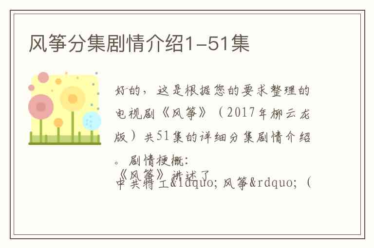 好的,这是根据您的要求整理的电视剧《风筝》(2017年柳云龙版)共51集的详细分集剧情介绍。