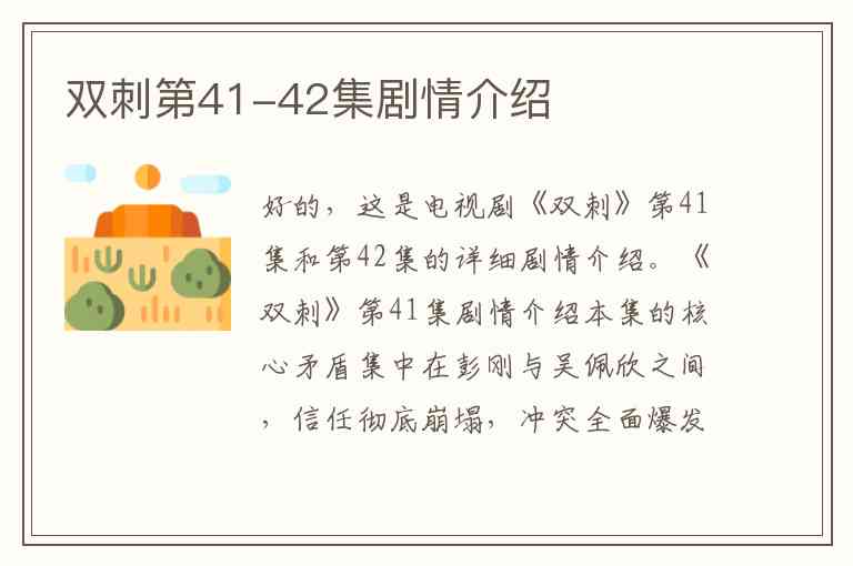 好的,这是电视剧《双刺》第41集和第42集的详细剧情介绍。