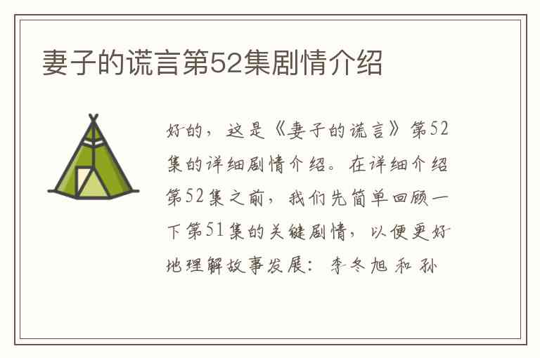 好的,这是《妻子的谎言》第52集的详细剧情介绍。