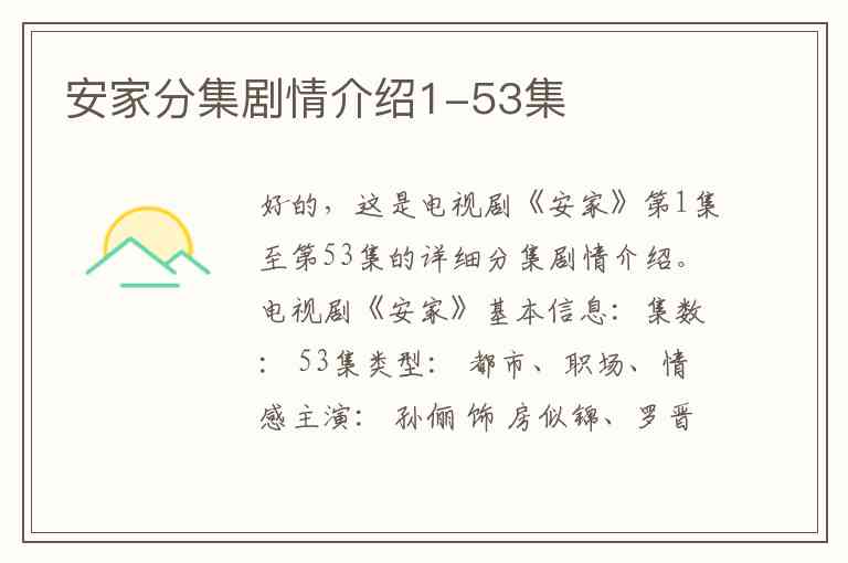 好的,这是电视剧《安家》第1集至第53集的详细分集剧情介绍。