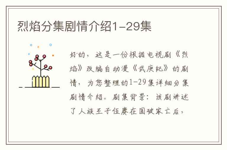 好的,这是一份根据电视剧《烈焰》改编自动漫《武庚纪》的剧情,为您整理的1-29集详细分集剧情介绍。