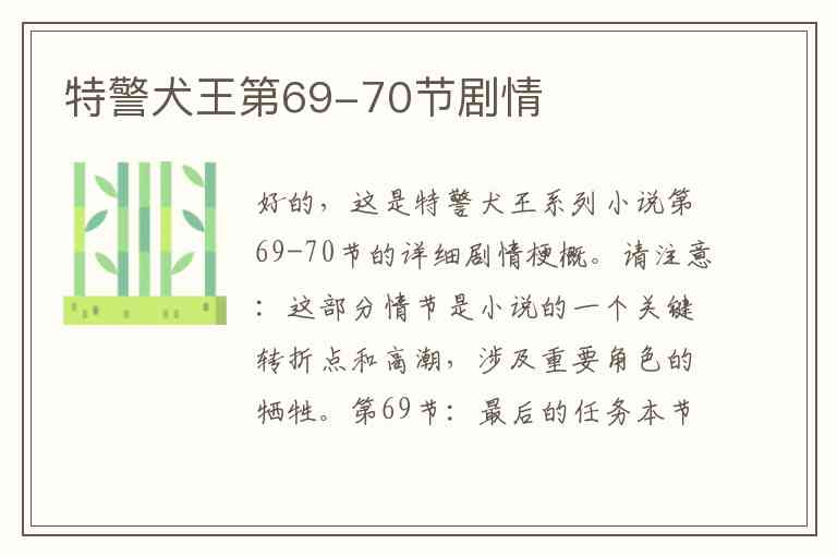 好的,这是特警犬王系列小说第69-70节的详细剧情梗概。