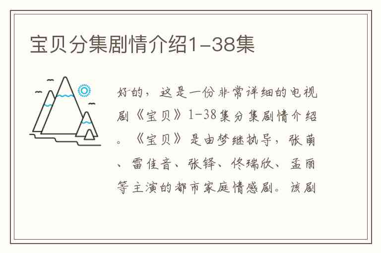 好的,这是一份非常详细的电视剧《宝贝》1-38集分集剧情介绍。