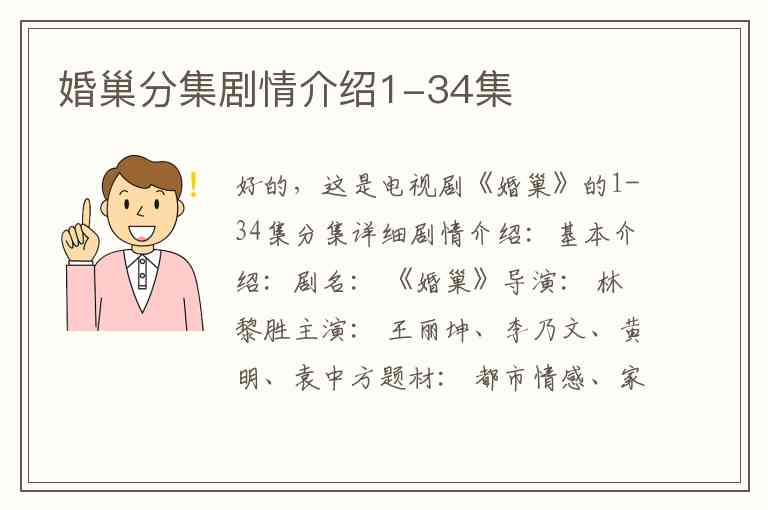好的,这是电视剧《婚巢》的1-34集分集详细剧情介绍: