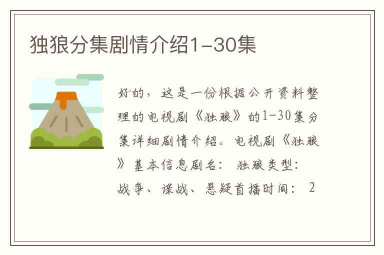 好的,这是一份根据公开资料整理的电视剧《独狼》的1-30集分集详细剧情介绍。