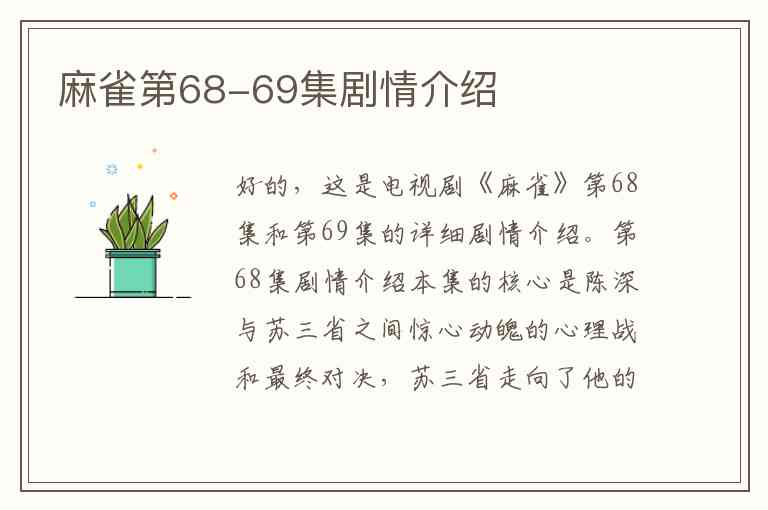 好的,这是电视剧《麻雀》第68集和第69集的详细剧情介绍。