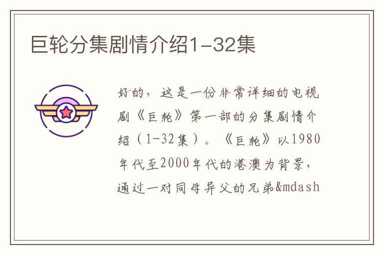 好的,这是一份非常详细的电视剧《巨轮》第一部的分集剧情介绍(1-32集)。