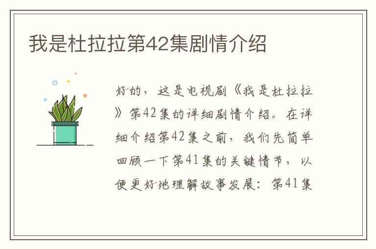 好的,这是电视剧《我是杜拉拉》第42集的详细剧情介绍。