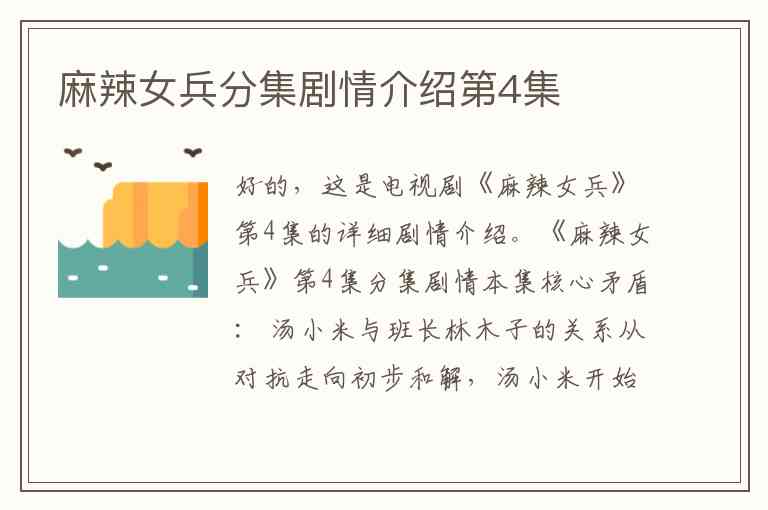 好的,这是电视剧《麻辣女兵》第4集的详细剧情介绍。