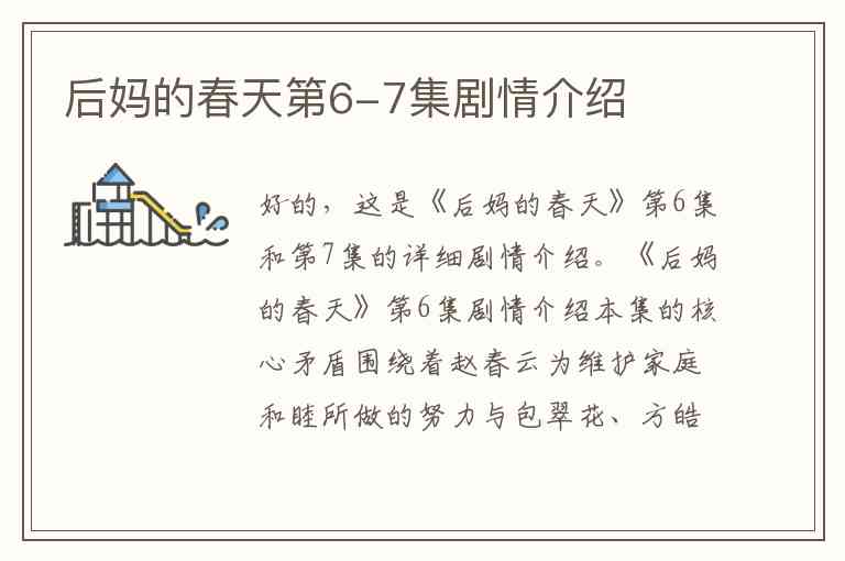 好的,这是《后妈的春天》第6集和第7集的详细剧情介绍。